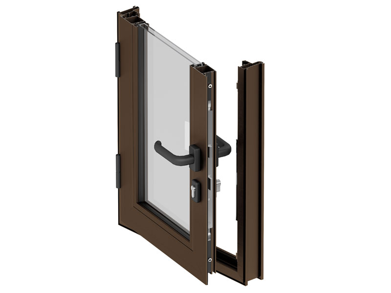 Tipología: Puerta batiente Colores: Anodizado Natural, Pintura Negra, Pintura Blanca, Anolok ® Bronce Oscuro Dimensiones máx.:700 mm x 2100 mm (1 hoja)